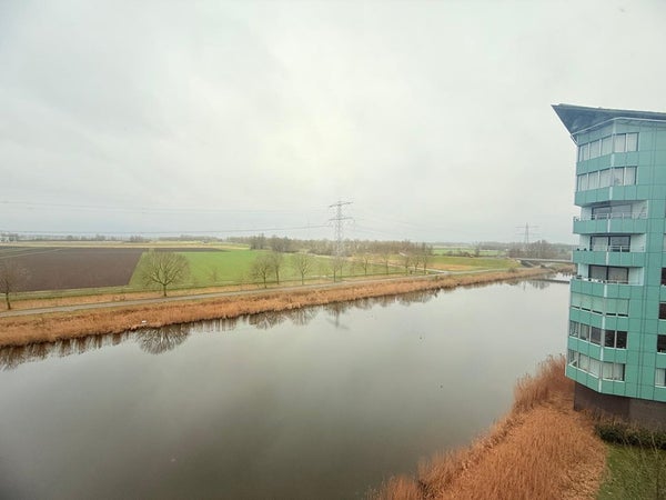 El apartamento está ubicado en el 5º piso y cuenta con una sala de estar luminosa con vistas panorámicas sobre Almere. El amplio espacio habitable ofrece lugar tanto para una zona de estar cómoda como para una gran mesa de comedor. La cocina abierta está completamente equipada, y desde la sala de estar tiene acceso a un balcón interior orientado al sureste, perfecto para disfrutar del sol de la mañana y de la tarde.