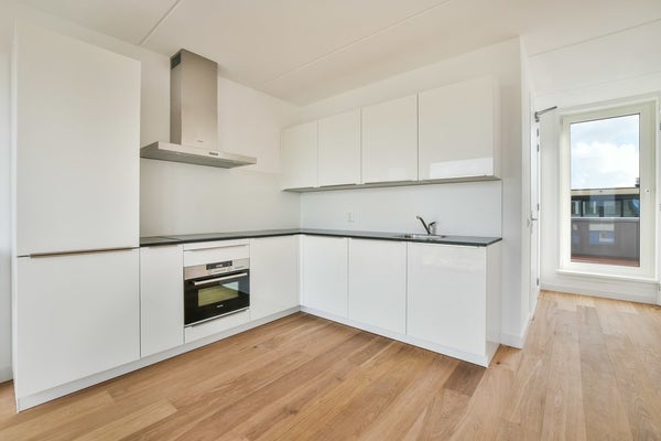Este es un bonito estudio (así que no hay dormitorio). La vivienda tiene un hermoso suelo de roble, una moderna cocina blanca brillante con electrodomésticos integrados y un lujoso baño.