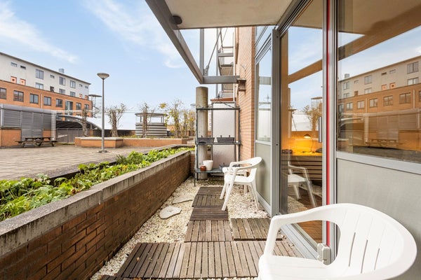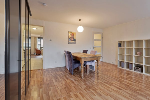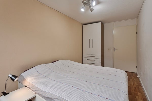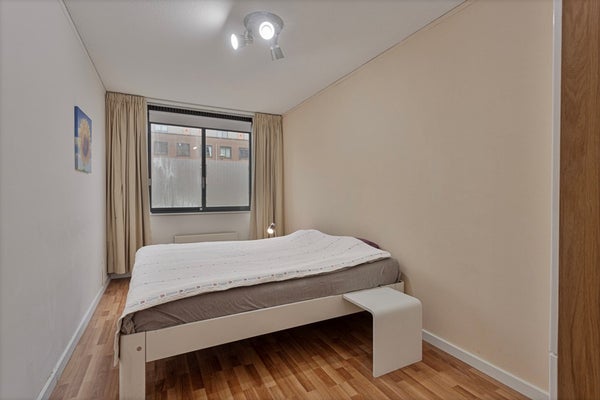 En la parte trasera del apartamento encontrará una gran habitación que se puede utilizar como dormitorio o espacio de oficina. La habitación está conectada a un pequeño balcón.