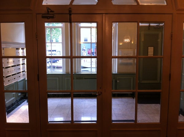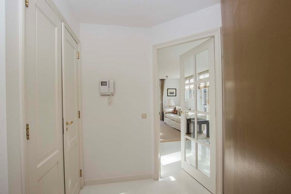 Entrada majestuosa con puertas de seguridad dobles. El apartamento tiene doble acristalamiento y balcón orientado al este.