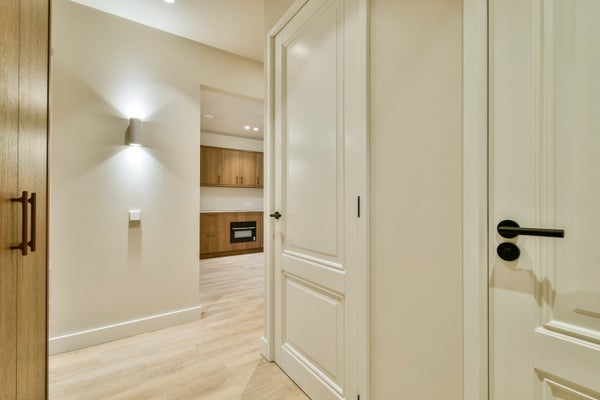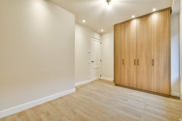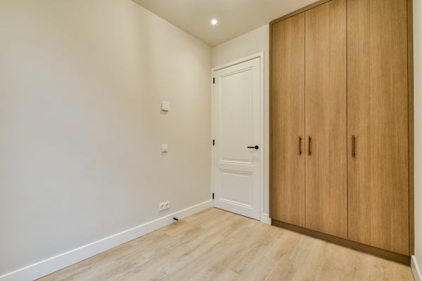 Los dormitorios están dispuestos de manera práctica y equipados con armarios personalizados. También hay armarios empotrados en el pasillo, que ofrecen espacio de almacenamiento adicional. El lujoso baño está equipado con una ducha a ras de suelo y un mueble de lavabo, y hay un baño separado. Además, hay una sala técnica separada que alberga el sistema de calefacción central y las conexiones para la lavadora y secadora.