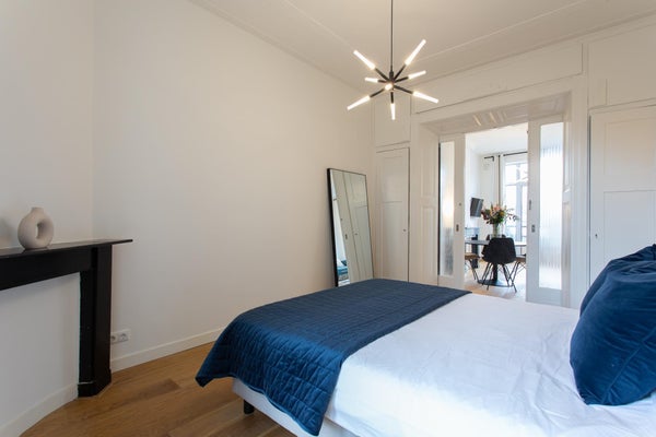 El pasillo central proporciona acceso a todas las habitaciones. El luminoso salón con balcón francés está situado al frente. El dormitorio principal en suite está ubicado en la parte posterior y ofrece acceso al balcón. El segundo dormitorio está destinado a oficina en casa / vestidor.