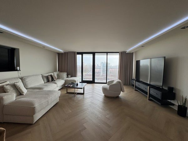 En el octavo piso de Tretjakovlaan, este elegante y completamente amueblado apartamento de 3 habitaciones con balcón, una hermosa vista despejada y también un espacio de estacionamiento privado.