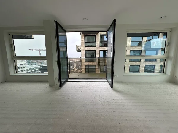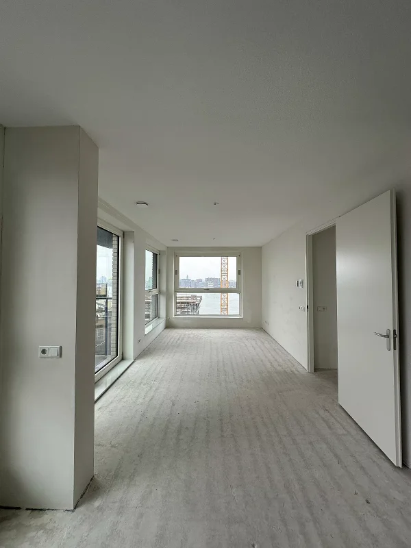 Este elegante apartamento de 3 habitaciones se encuentra en el moderno complejo 360 Degrees en Ámsterdam. Tiene ventanas grandes que crean un salón luminoso y amplio. La cocina abierta cuenta con armarios blancos, una encimera de material compuesto oscuro y electrodomésticos integrados ATAG. Hay dos dormitorios, perfectos como espacios tranquilos para dormir o una oficina en casa. El baño está bien terminado con un área de ducha y un lavabo doble. Además, el apartamento tiene un aseo separado y un trastero para la lavadora y secadora. El edificio es sostenible, equipado con bomba de calor y calefacción por suelo radiante. Ubicado en el popular barrio de Overhoeks, cerca del centro y de servicios.