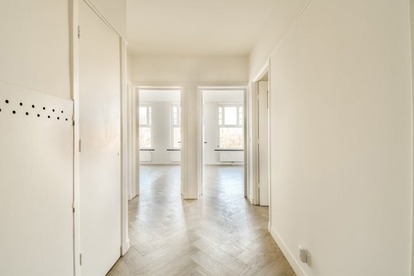 Accede al apartamento en el tercer piso a través de la cuidada escalera con ascensor. La entrada de la vivienda da a un pasillo central, que proporciona acceso a casi todas las habitaciones, creando así una distribución agradable y clara. A la derecha se encuentra la amplia sala de estar, ubicada en la parte frontal del apartamento. Gracias a las grandes ventanas, este espacio disfruta de agradable luz natural y una atmósfera abierta y cómoda. Hay mucho espacio para un amplio área de estar y un entorno acogedor para relajarse o recibir invitados. La cocina separada con área de comedor se encuentra en la parte trasera de la casa. Este espacio puede albergar una gran mesa de comedor y es un lugar agradable para cenar o reunirse. La disposición de la cocina es práctica y cuenta con varios electrodomésticos modernos empotrados. El apartamento tiene dos dormitorios bien proporcionados, ambos ubicados en zonas tranquilas. El espacioso dormitorio principal ofrece espacio para una cama grande y almacenamiento. El segundo dormitorio también es de tamaño cómodo y es ideal como habitación de invitados, espacio de trabajo o habitación infantil. El baño está ubicado en el centro de la vivienda y está equipado con ducha y lavabo. Un aseo separado se encuentra en el pasillo. También hay áreas de almacenamiento prácticas, incluidas varias armarios internos para almacenamiento adicional. Por último, el apartamento cuenta con un trastero en el piso del ático, una adición práctica y valiosa al confort de vida de esta vivienda.