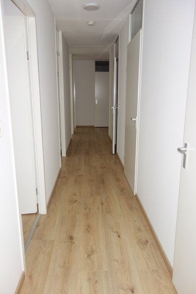 Entrada en la planta baja, ascensor hasta el 6° piso, acceso al apartamento a través del pasillo. Amplio pasillo, muy amplia habitación de almacenamiento; acceso a las 4 amplias habitaciones a través del pasillo: la 1ª habitación (principal) de aproximadamente 15 m²; 2ª y 3ª habitación de aproximadamente 13 m² y una 4ª de un poco menos de 13 m². Todas las habitaciones tienen grandes ventanas y son, por lo tanto, muy luminosas y están equipadas con un bonito suelo de laminado claro. Este suelo de laminado también se encuentra en el pasillo y la sala de estar. Baño de gran tamaño, decorado en blanco, equipado con una espaciosa ducha a ras de suelo con pared de cristal, lavabo y suficiente espacio para un armario de toallas. Aseo separado con lavabo; 2ª amplia habitación de almacenamiento equipada con lavadora. Sala de estar enorme y luminosa con muchas grandes ventanas, y cocina abierta completamente equipada con lavavajillas, frigorífico/congelador, placa de cocción cerámica, horno. Esta casa excepcionalmente bien acabada y grande mide nada menos que 132 m²!!