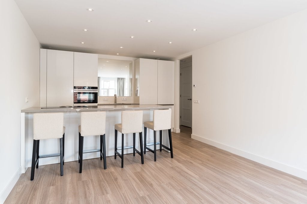 Este encantador y recientemente renovado apartamento de dos habitaciones de aproximadamente 57 m2 se encuentra en el primer piso del animado barrio de Pijp, en la Ferdinand Bolstraat. El Sarphatipark y el mercado de Albert Cuyp, junto con varios restaurantes y cafeterías, están a poca distancia. Las conexiones de transporte público son excelentes, con los tranvías 16 y 24 cerca. La distribución incluye una entrada con una escalera bien mantenida, una sala de estar amplia y luminosa con una cocina abierta. La cocina tiene electrodomésticos empotrados, incluyendo una cocina de cuatro fogones y lavavajillas. La habitación en la parte trasera tiene un baño en suite con ducha a ras de suelo, bañera y lavabo. El apartamento tiene un suelo de laminado y está disponible de inmediato, con un período mínimo de alquiler de un año y un depósito de dos meses.
