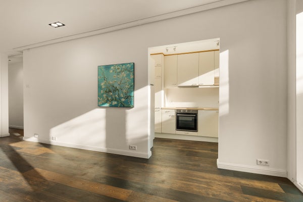 La habitación se encuentra en la parte delantera del apartamento y tiene un balcón francés, lo que proporciona una buena entrada de luz. La sala de estar está situada en la parte trasera tranquila y tiene acceso directo al balcón, un lugar agradable para sentarse al aire libre.