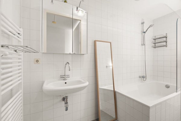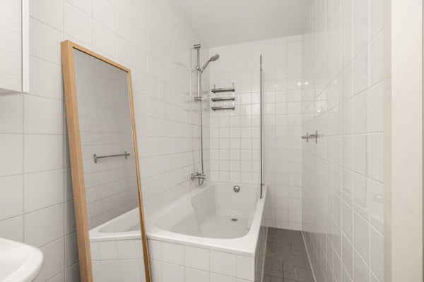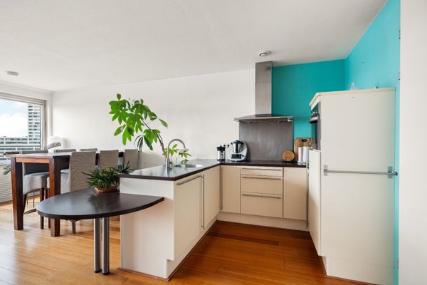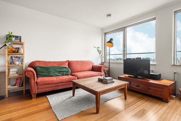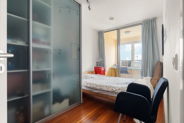 El apartamento está en el séptimo piso y se puede acceder en ascensor o por escaleras. La sala de estar está completamente equipada con un sofá y una cocina totalmente equipada con lavavajillas, nevera y horno + aseo separado y pequeño trastero. En el segundo piso hay un baño, una sala de lavandería y 2 dormitorios, uno de los cuales tiene un espacio adicional que puede ser adecuado como oficina.