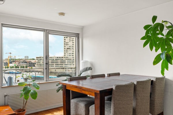 El apartamento se encuentra en Ámsterdam Oeste, cerca de la estación central. Situado en una sorprendente estructura arquitectónica en el Silodam, con una hermosa vista del IJ. Estás a 10 minutos en bicicleta del centro y de la zona de los canales.