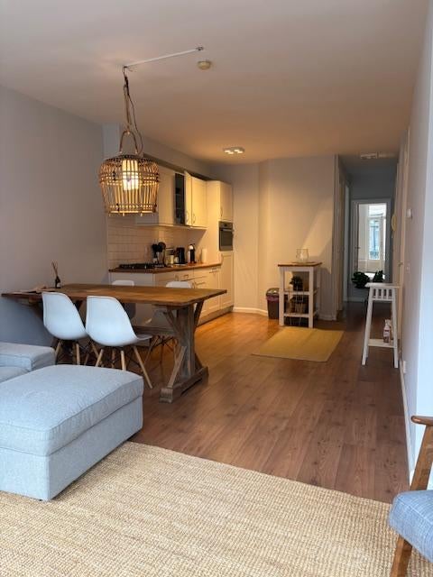 El apartamento cuenta con una cocina abierta completamente equipada, mesa de comedor y una sala de estar luminosa con un balcón francés.