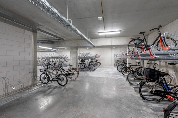 La sala de almacenamiento puede usarse como lavadero (tiene conexiones) así como despensa, o incluso ambas. Hay un espacio de almacenamiento adicional separado en el sótano del edificio, así como un gran aparcamiento para bicicletas comunitario.