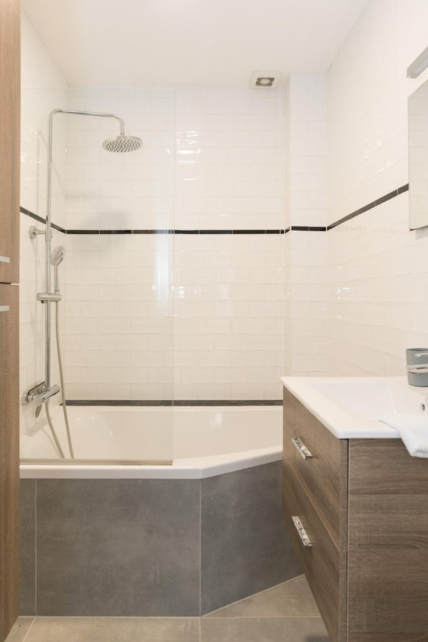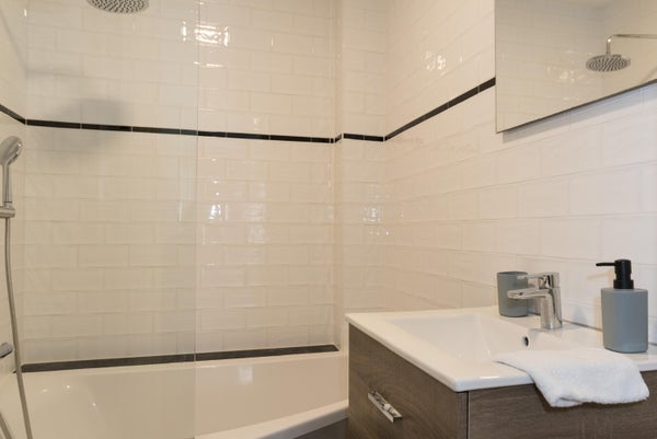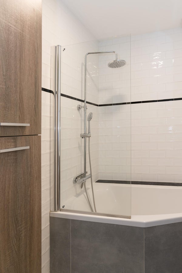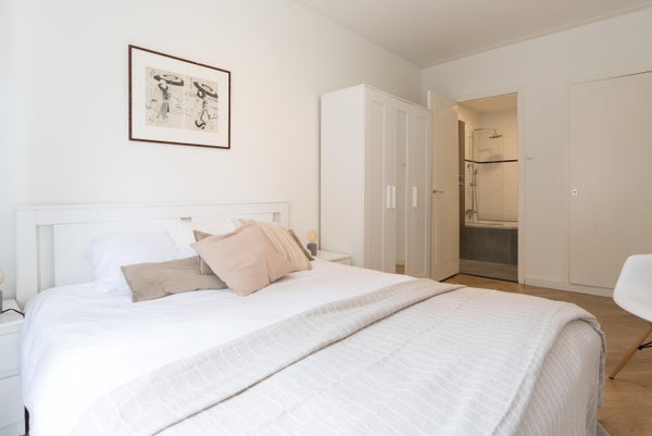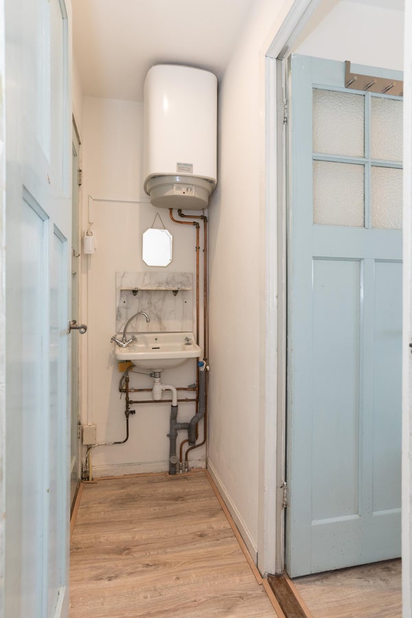 A través de la escalera común, accede al apartamento en el primer piso. Al entrar, llega directamente a la luminosa y acogedora sala de estar. En la parte trasera de la casa se encuentra la amplia cocina, equipada con electrodomésticos modernos y un acogedor bar. Esto crea un lugar ideal para un desayuno o un momento de relajación mientras cocina. La sala de estar se encuentra en la parte delantera de la casa y se beneficia de una agradable entrada de luz natural. Gracias al doble acristalamiento, el apartamento se encuentra en un oasis de tranquilidad y mantiene el bullicio afuera a pesar del entorno vibrante. Además, este espacio cuenta con una chimenea bien acabada y un práctico armario empotrado. En la parte trasera del apartamento está el dormitorio con baño en suite, equipado con bañera, ducha y lavabo. El baño separado se encuentra en el pasillo, lo que ofrece comodidad adicional tanto para los residentes como para los invitados. Además, la propiedad cuenta con una habitación extra que puede servir como oficina en casa, sala de hobby o dormitorio adicional.
