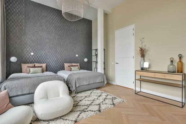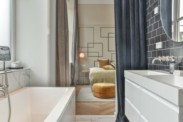 A través de la entrada segura en la planta baja, se accede al apartamento por ascensor o escaleras en el primer piso. El ascensor se abre directamente al apartamento. A través del pasillo se accede a la fantástica sala de estar. Con techos altos, antiguos detalles y un hermoso suelo de roble en espiga, es un placer estar aquí. La cocina abierta hecha a medida está completamente equipada. La logia es un lugar maravilloso, tanto en verano como en invierno. El apartamento tiene tres dormitorios, dos baños y un aseo separado. El apartamento está equipado con armarios empotrados a medida. Todo el apartamento tiene calefacción por suelo radiante. Se pueden alquilar tres plazas de aparcamiento en el garaje por un costo adicional. ¡Una casa lujosa en una gran ubicación!