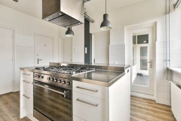 Desde el vestíbulo, se entra al apartamento en el pasillo, que tiene una conexión abierta con la cocina, que tiene un diseño industrial con acero inoxidable. La cocina está equipada con una isla de cocina con una estufa a gas y un horno grande. La isla de cocina también sirve como un acogedor bar. La cocina también está equipada con campana extractora, lavavajillas y refrigerador y congelador.
