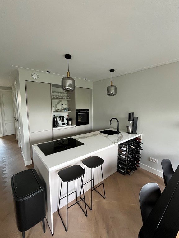 La cocina está equipada con un Quooker, placa de inducción con extracción interna, horno de convección, frigorífico y congelador, y lavavajillas.