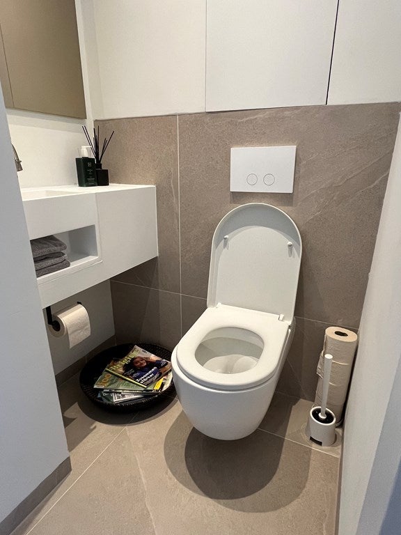 En el pasillo hay un aseo separado y un espacio separado para la lavadora (Bosch) y la secadora (AEG).