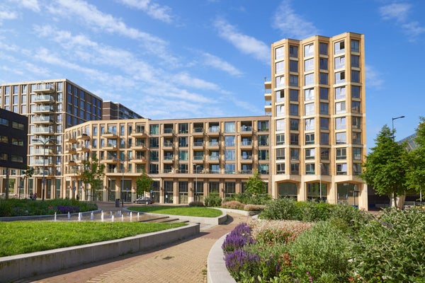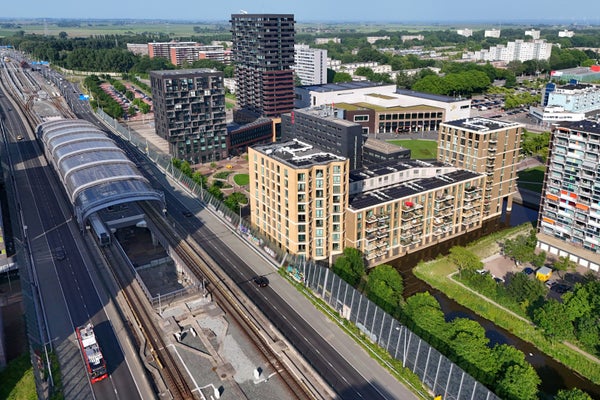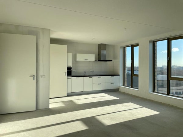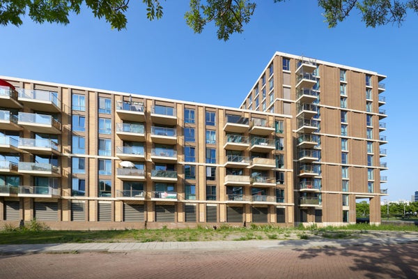 El apartamento en el complejo Paddington se encuentra en el décimo piso y cuenta con una amplia sala de estar con cocina abierta, equipada con electrodomésticos modernos ATAG y una encimera de composite negro. Tiene acceso a un balcón con hermosas vistas. El apartamento incluye dos dormitorios, un baño con ducha y lavabo, un aseo separado y un área de almacenamiento para lavadora y secadora. Este complejo consiste en diferentes alturas y tiene un patio en el centro. En la planta baja hay espacios comerciales, un garaje con 41 plazas en alquiler para residentes y un gran sótano para 499 bicicletas y 4 bicicletas de carga. Las viviendas están dirigidas a personas con ingresos medios, con criterios específicos de ingresos.