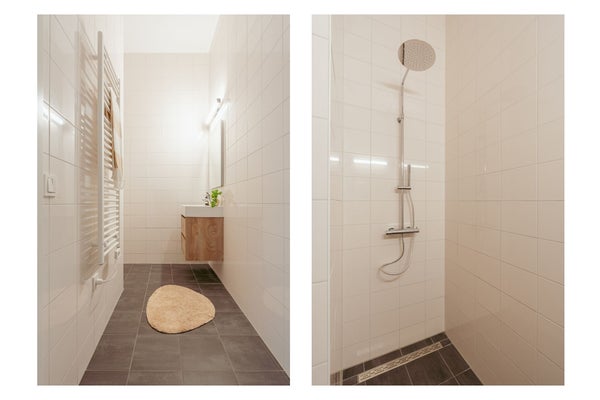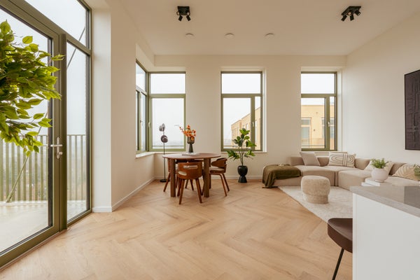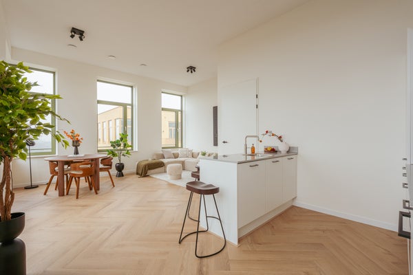 En Westerpark West se ofrece un número limitado de penthouses que van de 64 a 67 metros cuadrados. Están diseñados para aquellos que aprecian la luz y una hermosa vista despejada. Con una altura de techo de aproximadamente 3.20 metros, experimentarás de inmediato una sensación de amplitud y apertura. La luminosa sala de estar con cocina moderna abierta y una isla de cocina hundida forma el corazón de la vivienda. La cocina está completamente equipada con diversos electrodomésticos integrados. Las ventanas extra altas ofrecen una vista única sobre el parque o la ciudad. Los penthouses cuentan con dos dormitorios, un baño terminado con ducha a nivel, un aseo separado y un espacio exterior con vistas impresionantes donde podrás disfrutar de la paz y la tranquilidad.