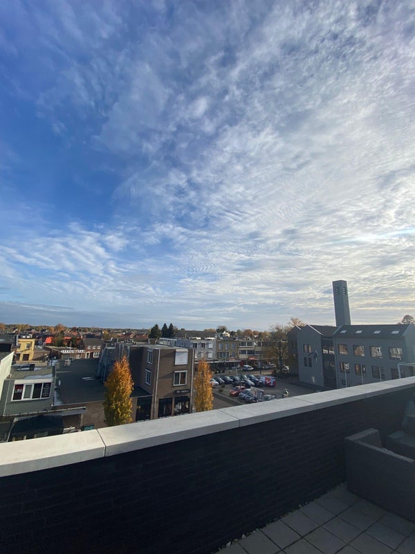 Apartamento elegante y espacioso en el vibrante centro de Budel con dos dormitorios, una amplia sala de estar y una gran terraza en la azotea.