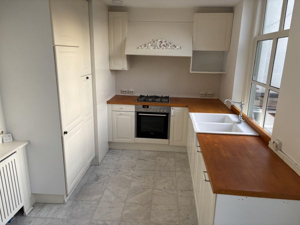 Este encantador apartamento de 3 habitaciones está ubicado en el primer piso de un edificio del siglo XVI en el hermoso Hofkwartier de La Haya, rodeado de tiendas únicas y restaurantes acogedores. La amplia sala de estar de aproximadamente 45 m², incluida la zona de armarios empotrados, conduce a una cocina equipada y a dos balcones soleados. El apartamento cuenta con dos dormitorios, ambos de aproximadamente 20 m², ideales para un uso flexible. El baño incluye una bañera con ducha y dos lavabos. También hay un baño separado con espacio de almacenamiento. La vivienda conserva características originales, como puertas hermosas y una antigua chimenea. Además, hay un cobertizo en el jardín parcialmente comunitario. Alquiler: 2200 € al mes, con un depósito de 4400 €.