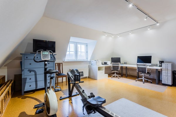 Aquí se encuentran dos dormitorios. El dormitorio principal te da inmediatamente una sensación de tranquilidad y confort, el segundo dormitorio también es espacioso y no está amueblado. El moderno baño está acabado de forma lujosa y cuenta con calefacción por suelo radiante, una ducha de lluvia y un segundo inodoro. También hay una lavadora y una secadora en este piso, lo que hace quetodo sea práctico y completo. La amplia terraza en la azotea orientada al sur está equipada con un cómodo juego de salón, una mesa de comedor y un toldo eléctrico. Aquí puedes disfrutar del sol en completa privacidad o relajarte después de un largo día.