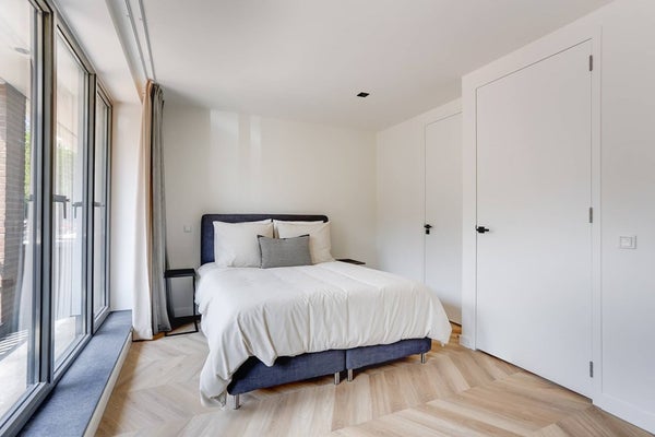 Amplio salón y comedor, decorados de forma moderna y equipados con suelos de espiga, calefacción por suelo radiante y focos empotrados. Cocina abierta de lujo completamente nueva, totalmente equipada y equipada con un Quooker.