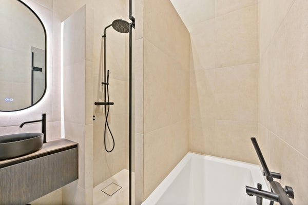 Los apartamentos casi neutros en energía cuentan con calefacción y refrigeración por suelo radiante, una lujosa cocina con electrodomésticos AEG y grifo Quooker, un lujoso baño con ducha a ras de suelo (y bañera), y un trastero privado. Dependiendo del apartamento, el residente tiene acceso a un jardín privado, balcón o terraza, así como un punto de carga para vehículos eléctricos en su propia plaza de aparcamiento.