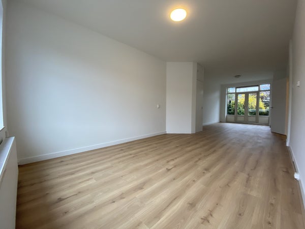La amplia y luminosa sala de estar/comedor abierta está equipada con un armario y ofrece acceso al jardín a través de puertas de vidrio. Aquí disfrutas de mucha luz natural y un espacio habitable agradable.