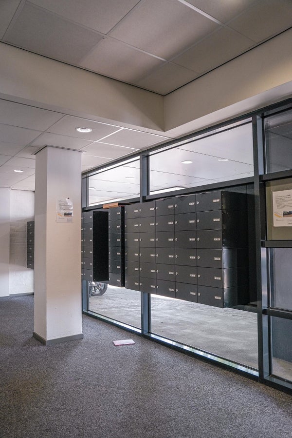 El edificio cuenta con una entrada principal en la parte delantera y trasera del complejo. Desde el vestíbulo central, tiene acceso a los buzones y trasteros. A través de los ascensores o las escaleras, podrá llegar a la planta de su apartamento.