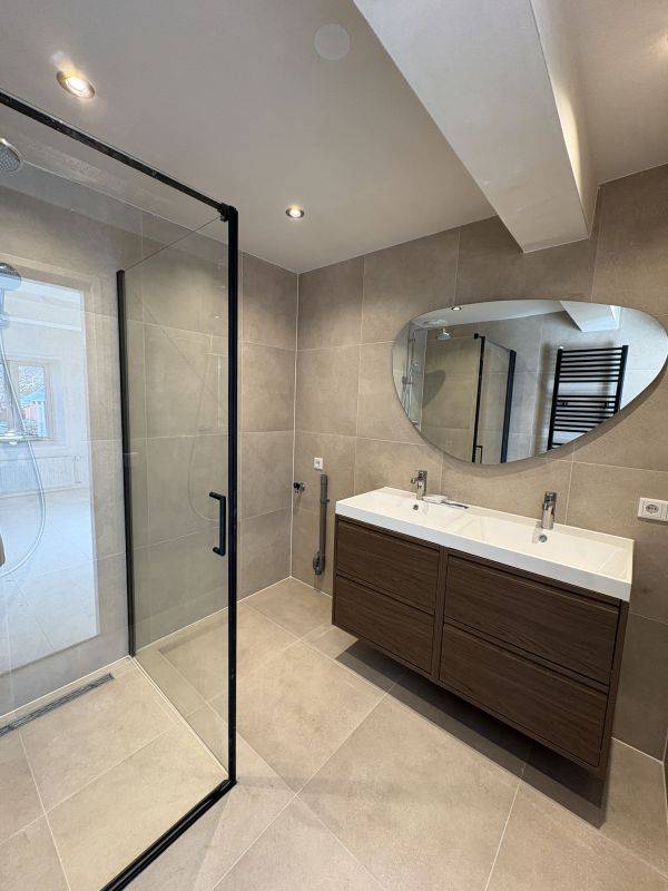 Hermoso apartamento con amplio salón y nueva cocina. La cocina está equipada con todas las comodidades, como nevera, lavavajillas, placa de cocción, campana extractora y horno combinado/microondas. Amplio dormitorio con acceso al nuevo baño, de acabado lujoso. El baño cuenta con ducha, radiador de diseño, lavabo doble con mueble y espejo. El apartamento tiene un baño separado con lavabo. En el baño hay conexiones para la lavadora.