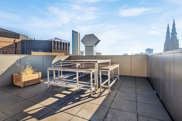 Además de tu propio apartamento, puedes disfrutar de la amplia terraza en la azotea compartida. El lugar ideal para relajarte, leer un libro o disfrutar de una bebida con amigos, mientras contemplas el horizonte de Eindhoven.