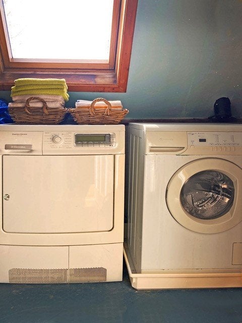 El propietario vive abajo. Compartes la entrada y la lavadora.
