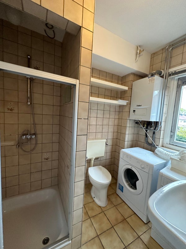 El apartamento cuenta con un dormitorio separado, un almacén para bicicletas en el jardín y un balcón donde puedes disfrutar del aire libre. La cocina tiene una estufa de gas, varios espacios de almacenamiento, un horno y un refrigerador con congelador. El baño tiene una ducha separada, lavadora, secadora y espacio de almacenamiento.