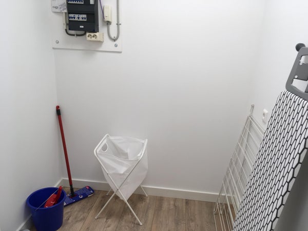 Apartamento con una habitación, un pequeño trastero y baño. Sala de estar con cocina abierta. La cocina está equipada con electrodomésticos integrados (placa eléctrica, campana extractora, lavavajillas, frigorífico-congelador). Baño con ducha a ras de suelo, lavabo, armario espejo y lavadora.