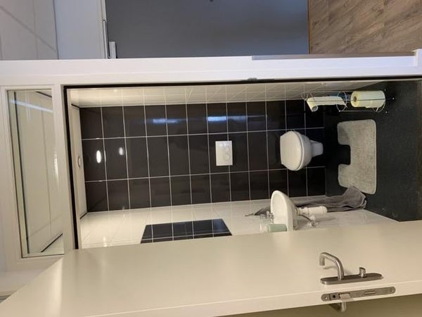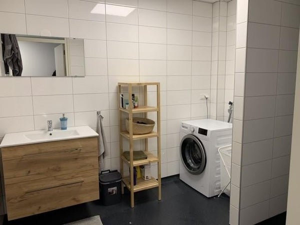 Apartamento con una habitación, un pequeño espacio de almacenamiento y baño. Sala de estar con cocina abierta. La cocina está equipada con electrodomésticos empotrados (placa de cocción eléctrica, campana extractora, lavavajillas, frigorífico-congelador). Baño con ducha a ras de suelo, lavabo, espejo y lavadora.