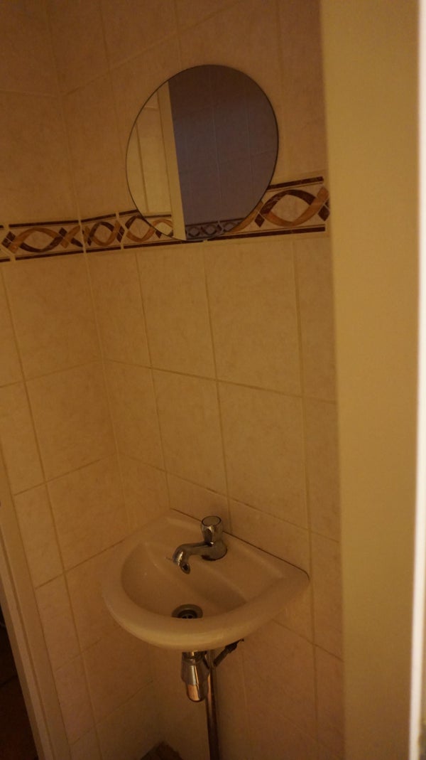 Hay baños tanto abajo como arriba, y, por supuesto, hay una conexión para lavadora en el inmueble.
