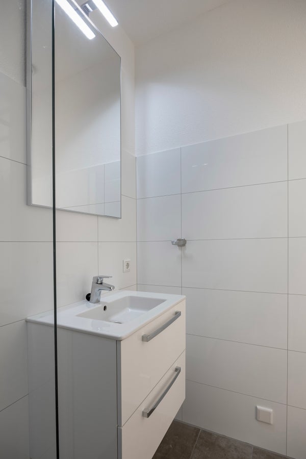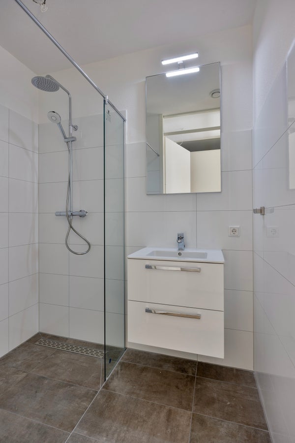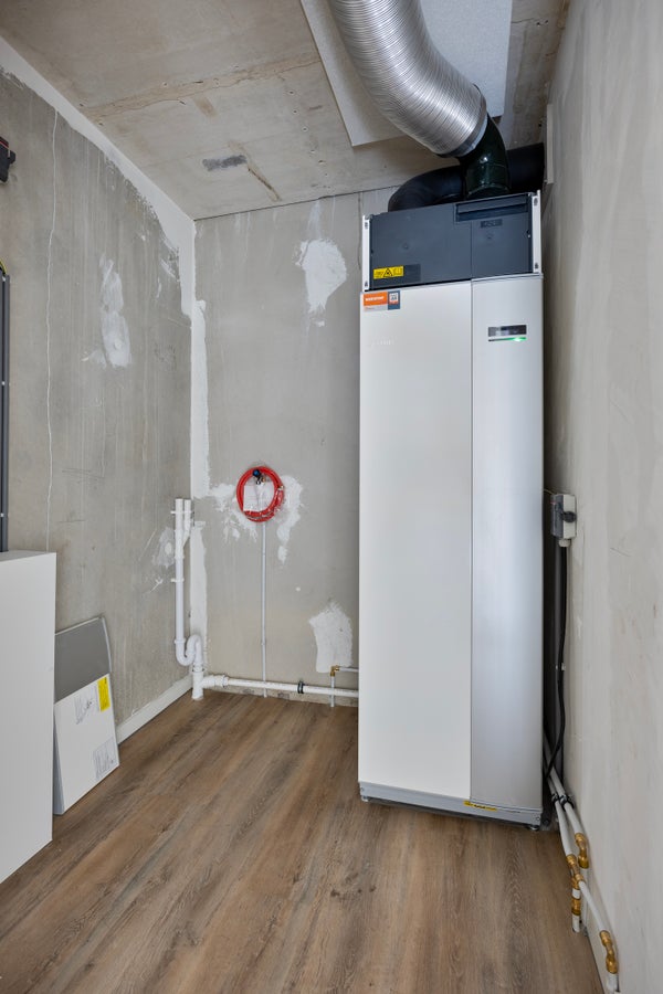 La cocina está equipada con todos los electrodomésticos incorporados necesarios, incluyendo un refrigerador con congelador, campana extractora, microondas combinado, cocina de inducción y lavavajillas. El baño está completamente terminado y tiene una ducha a ras de suelo y un lavabo con espejo. La propiedad también cuenta con un baño separado y un área de almacenamiento interna, donde por ejemplo se puede colocar la lavadora. La propiedad ya cuenta con un suelo de PVC imitando madera y rieles para cortinas.
