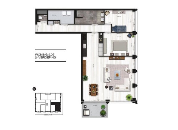 Disponible inmediatamente: Stalstraat 20. Este espacioso apartamento en esquina se encuentra en el lujoso complejo de apartamentos Mercado, justo detrás de la Grote Markt. Es un edificio contemporáneo que ofrece tranquilidad en medio de la bulliciosa ciudad. En el segundo piso, el apartamento cuenta con un vestíbulo con aseo y acceso a un amplio trastero con bomba de calor y lavadora/secadora. El baño de lujo tiene una ducha a ras de suelo, lavabo doble y bañera. Hay dos dormitorios de 16 m² y 13 m² respectivamente. La sala de estar de 61 m² con cocina abierta está bien equipada y da acceso a un balcón de 9 m². En el sótano hay plazas de aparcamiento y un trastero de bicicletas comunitario. El alquiler total, incluyendo los gastos de servicio, es de 3.584,56 € al mes, con condiciones específicas de alquiler.