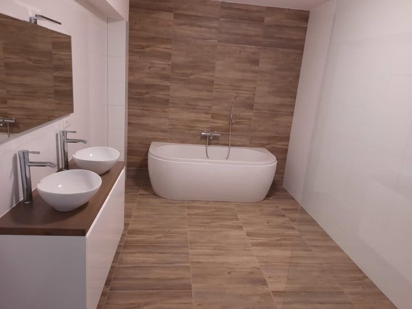 Además, el apartamento tiene dos habitaciones. El baño está completamente terminado y equipado con una ducha a ras de suelo, lavabo y un espejo con iluminación integrada. También hay un baño separado.