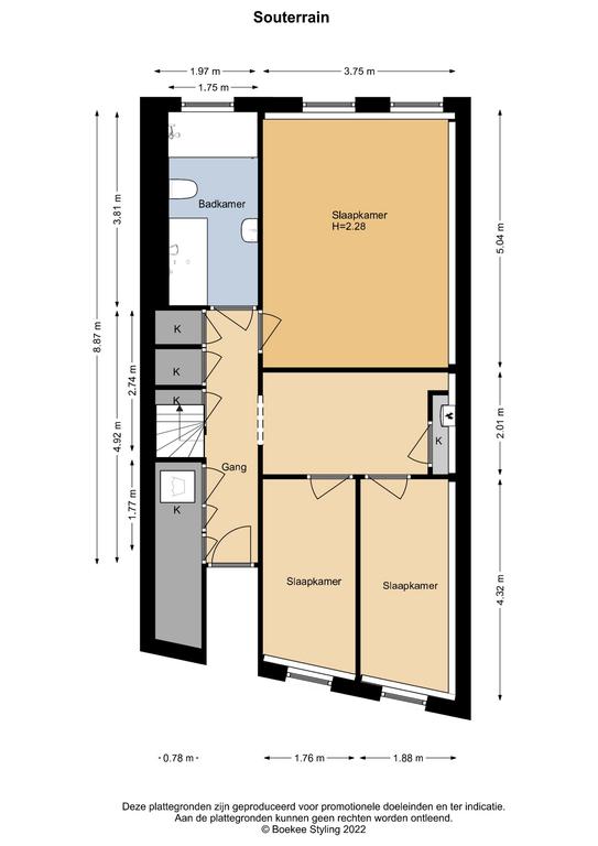 Una escalera de madera característica conduce al pasillo con un práctico almacenamiento empotrado. Desde aquí, se accede a dos dormitorios, al baño y a un cuarto de lavandería. La zona de lavandería está equipada con lavadora y secadora y ofrece espacio adicional de almacenamiento. Ambas habitaciones son de generosas dimensiones. El baño moderno cuenta con bañera, ducha a ras de suelo, inodoro sanibroyeur y mueble de baño. El sótano tiene techos altos que permiten grandes ventanales en todas las habitaciones, así como un sistema de ventilación recién añadido para garantizar la calidad del aire, además de calefacción por suelo radiante.
