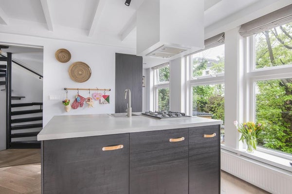 En el corazón de Haarlem se encuentra este apartamento completamente renovado de aproximadamente 115 m² con una soleada terraza en la azotea. Situado en una calle tranquila, este hogar está cerca de numerosas tabernas, restaurantes, el Grote Markt, la estación de tren y Kenaupark. El bosque, la playa y las dunas son fácilmente accesibles en bicicleta. Al ingresar desde la planta baja, encontrará un amplio vestíbulo con almacenamiento. En el primer piso hay una acogedora sala de estar, una cocina abierta con isla de cocina y un área de comedor. En el segundo piso hay un amplio dormitorio principal con suficiente espacio de almacenamiento y un baño moderno con ducha a ras de suelo. En el tercer piso hay dos habitaciones adicionales y acceso a la terraza en la azotea con vistas a la ciudad. Esta propiedad amueblada está lista para ser habitada.