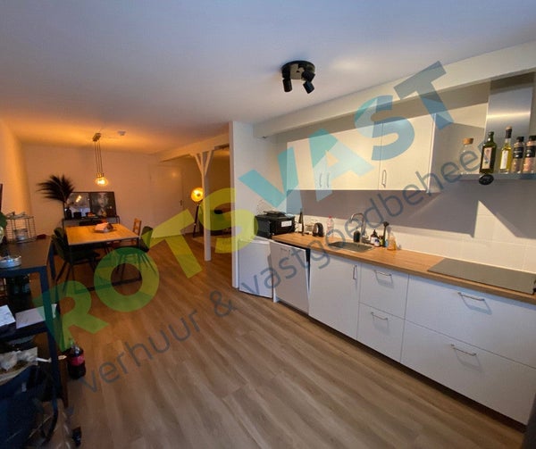 Amplio salón con intercomunicador y moderna cocina abierta, baño de lujo equipado con ducha, inodoro y lavabo con mueble de lavabo. Amplio y separado dormitorio en la parte delantera. La cocina está equipada con una cocina de inducción, campana extractora y lavavajillas. Además, este apartamento se entregará amoblado con, entre otros, revestimientos de pared, cortinas y un hermoso suelo de PVC neutro.