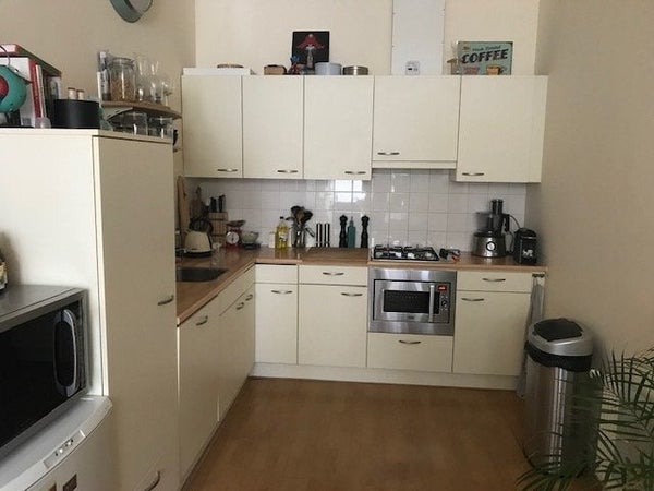 En un lugar hermoso en el centro con vista al agua del Oude Rijn, se encuentra un amplio apartamento en la planta baja con 1 dormitorio. Al entrar, está en el pasillo con acceso a la sala de estar o más adelante en el pasillo con armarios empotrados, baño, aseo y dormitorio.