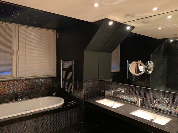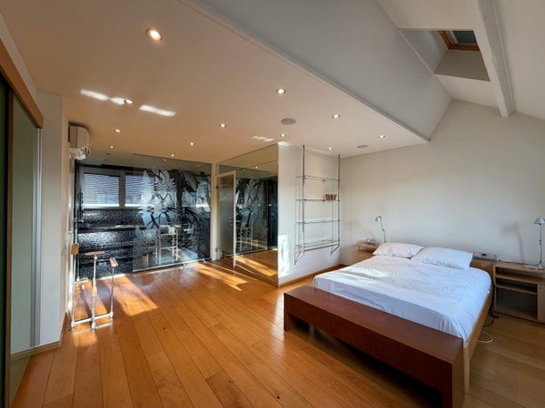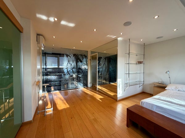 El acceso al apartamento se encuentra en el primer piso. En el segundo piso hay una amplia terraza en la azotea, orientada al norte. Amplio y luminoso salón con decoración de lujo y elementos auténticos. Cocina abierta con encimera de mármol, equipada con barra, placa de cocina con campana extractora, fregadero, máquina de café empotrada, dos hornos y nevera para vino. Aseo separado. En el tercer piso se encuentra el amplio primer dormitorio con baño en suite. El dormitorio es espacioso y cuenta con un amplio armario empotrado. También hay un cuarto de lavado con lavadora y secadora. El baño está decorado y terminado de lujo, equipado con bañera, ducha a ras de suelo y lavabo doble. En el cuarto piso se encuentra el segundo dormitorio.