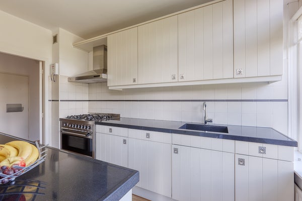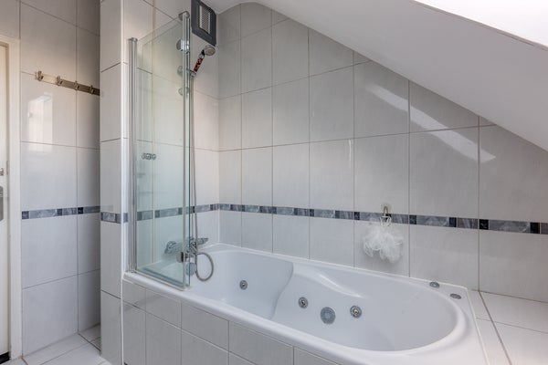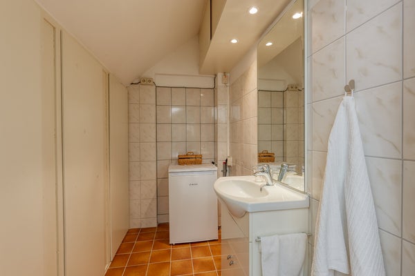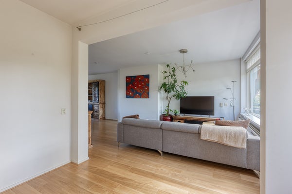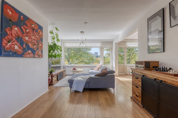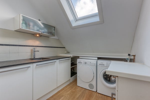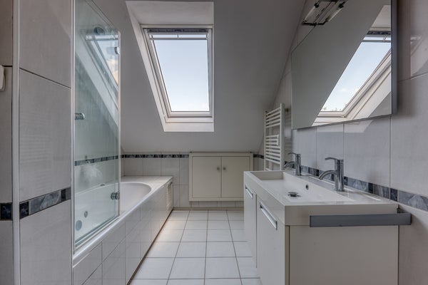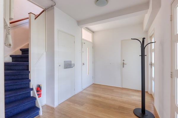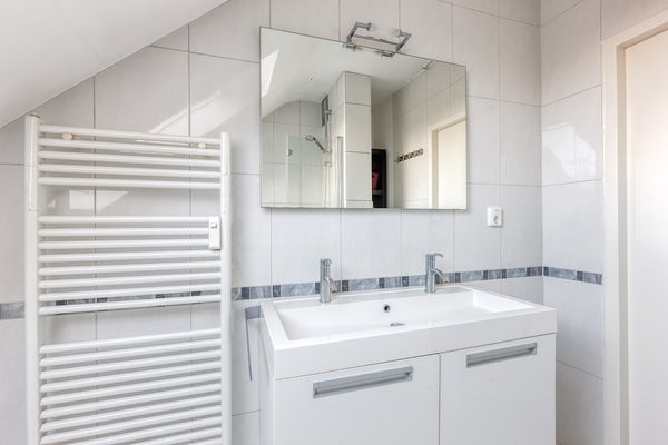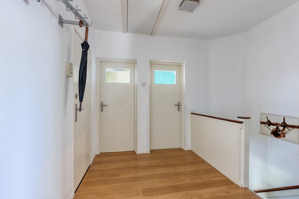 En este piso hay tres cómodos dormitorios. El dormitorio principal está ubicado en la parte delantera de la propiedad y cuenta con un vestidor con lavabo. Una de las otras habitaciones también tiene su propio lavabo y un gran armario (se queda), lo que hace que esta habitación sea especialmente práctica, por ejemplo, para huéspedes o niños mayores. También hay una pequeña habitación que es excelente como oficina o habitación infantil. Además, hay un cuarto de lavado separado con lavadora y secadora. En este espacio, también hay una despensa con un pequeño refrigerador para mayor comodidad. El baño limpio y espacioso está equipado con una bañera (con ducha) y un mueble de lavabo doble. Además, hay un segundo baño separado con lavabo.