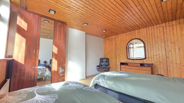 Segundo piso: entrada, pasillo con acceso a todas las habitaciones, baño separado y una sala de estar amplia y luminosa. La cocina separada está equipada con una placa de cocina a gas, extractor, lavavajillas, microondas y una combinación de refrigerador/congelador. En este piso también se encuentra el primer dormitorio.