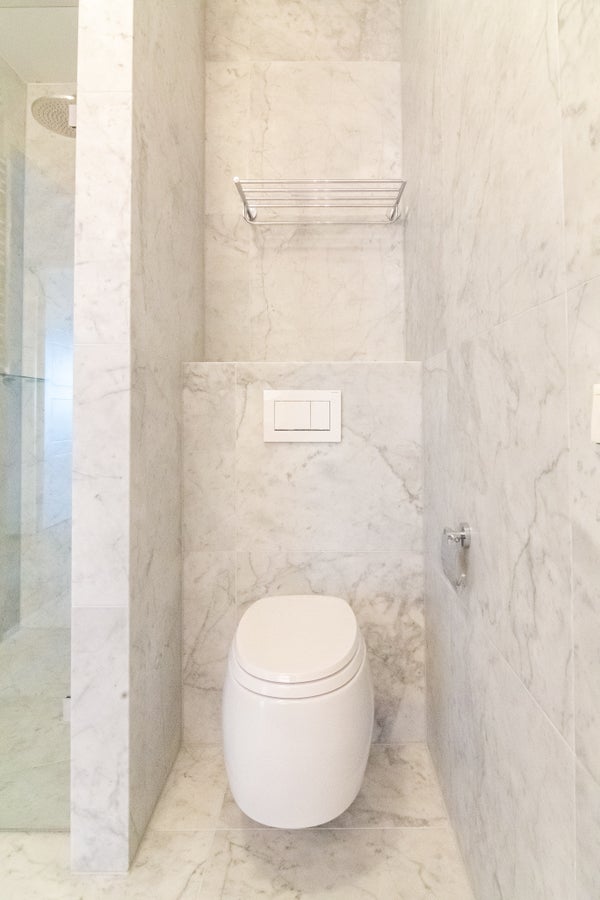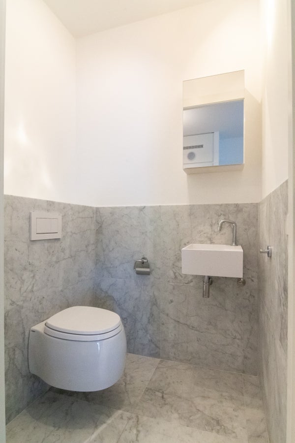 The luxurious separate toilet is equipped with a fountain / water tap.