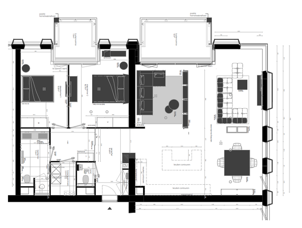 Living room; very light and spacious (approx. 60 m) living room with a fully glazed front on the balcony sides. What a view!