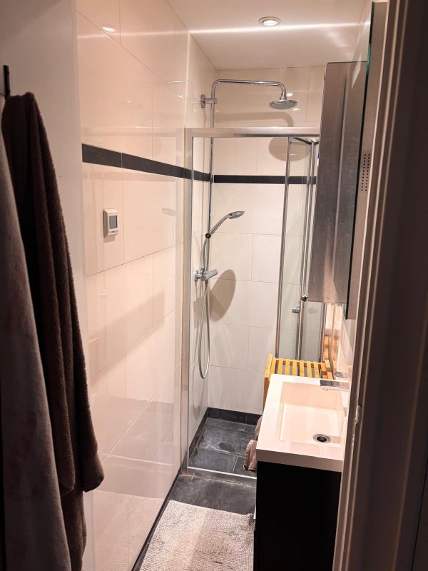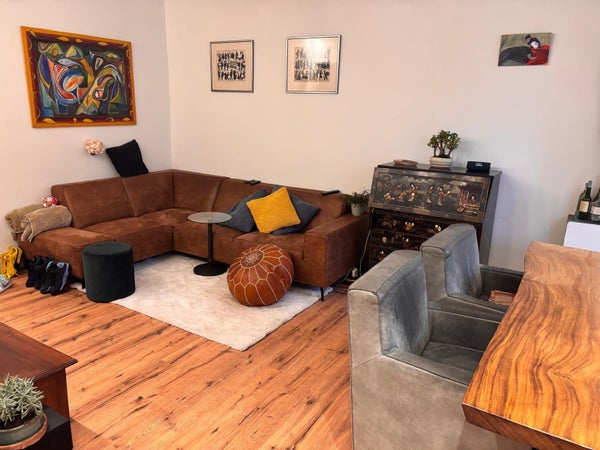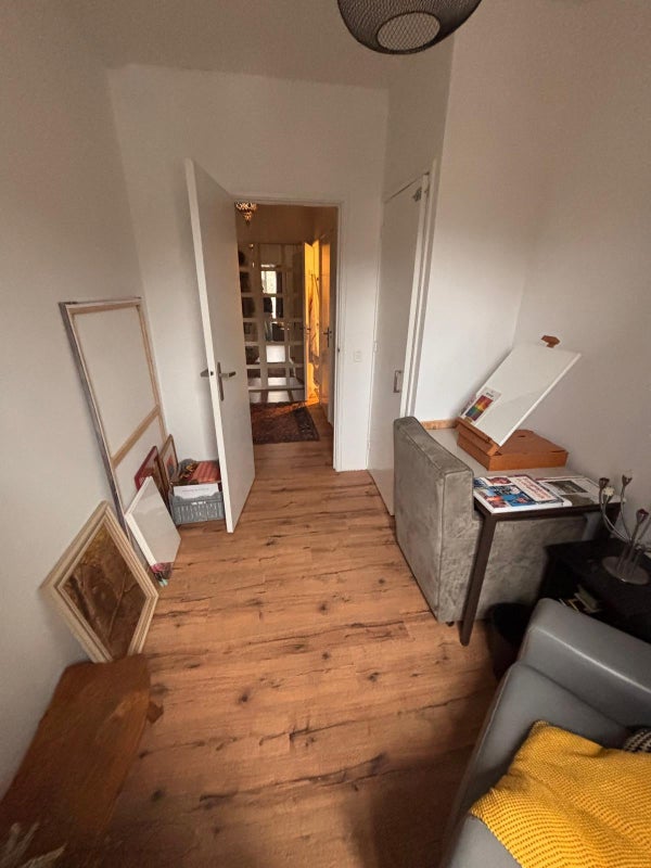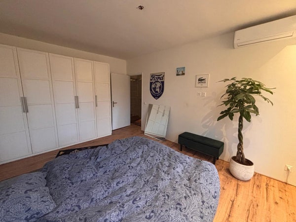 En la parte trasera tranquila del edificio se encuentran los dormitorios. El dormitorio grande (aproximadamente 3,5*5 metros) está equipado con aire acondicionado y un armario empotrado. El pequeño dormitorio/estudio tiene un armario empotrado y se puede decorar a gusto con una cama matrimonial o una configuración de escritorio.